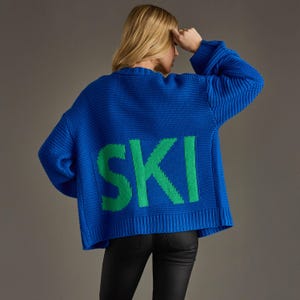 Blue Ski Knit Cardigan | Oversized Knit Cardigan | Ski Cardigan | Colorful Cardigan | Ski Trip | Ski Vacation | Blue Knit Cardigan