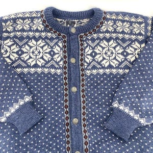 Dale of Norway Wool Cardigan Sweater Nordic Snowflake Blue White Vintage Knit M
