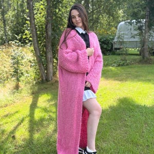 Handmade Oversized Chunky Knit Cardigan – Long Pink Duster Sweater – Cozy Scandinavian Knitwear